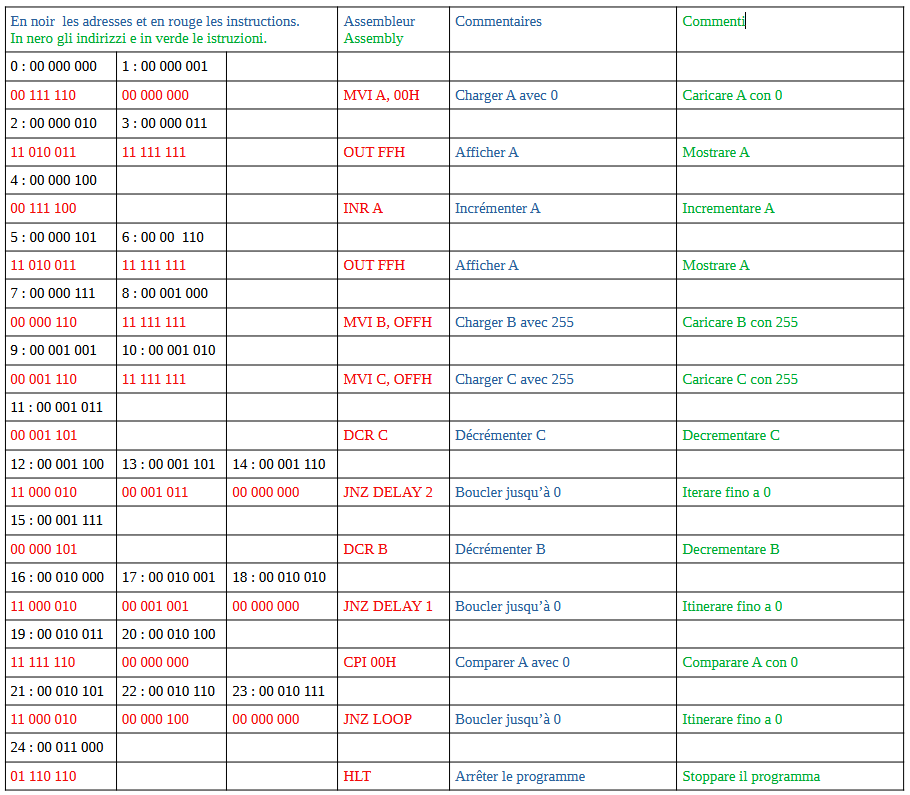 Le programme compte de 0 à 255 et écrit les chiffres sur les LED, en binaire.