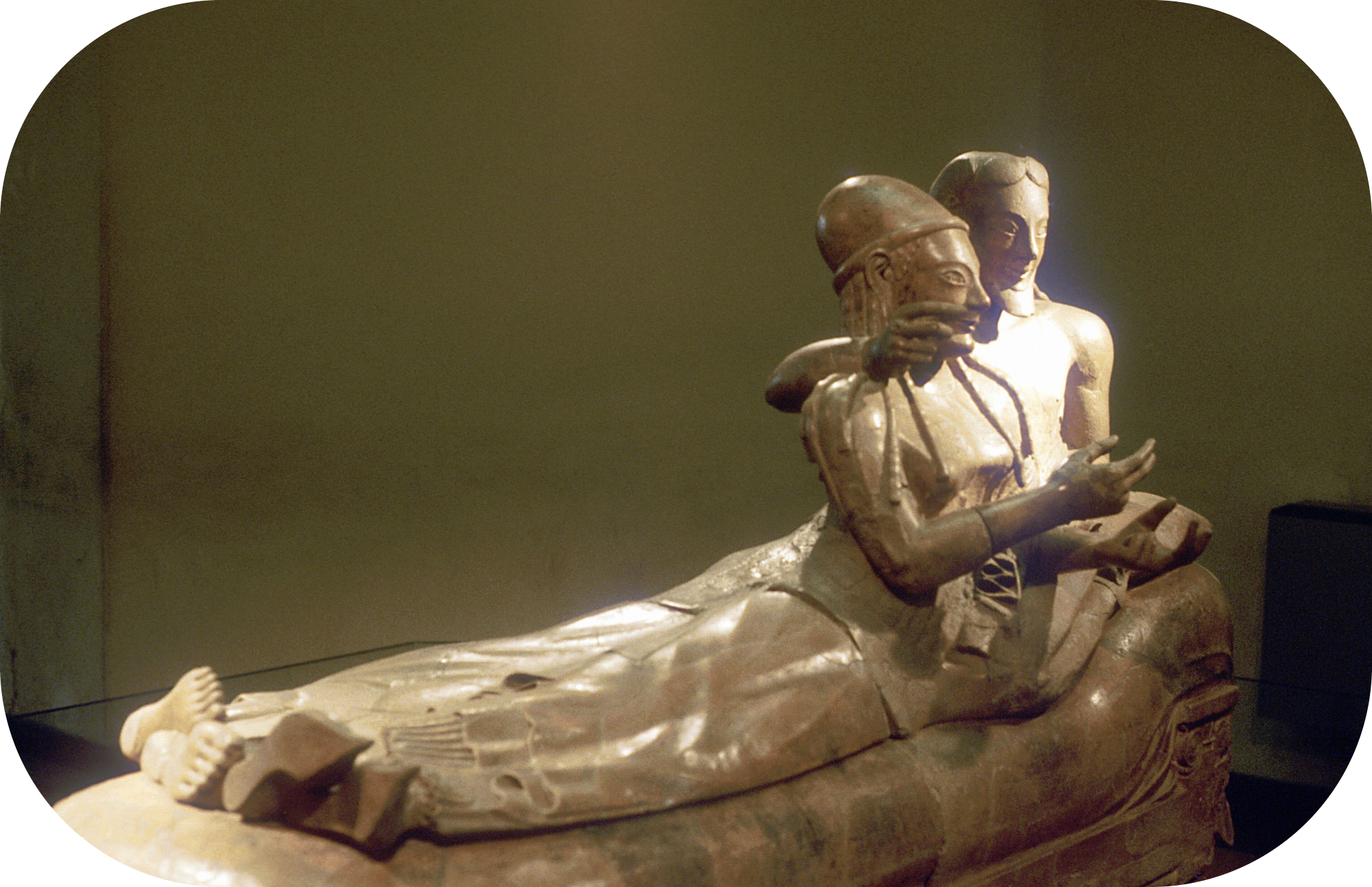 Dans l’art étrusque, il n’est pas rare de voir un couple avec des gestes tendres, des gestes d’affection, qui s’embrasse…