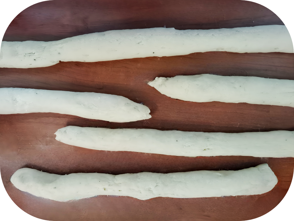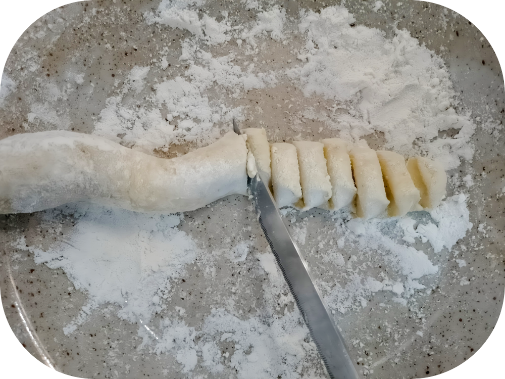 Arrotolare l'impasto per ottenere dei rotolini del diametro di un centimetro e mezzo, tutte identiche.