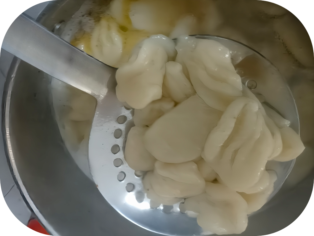 Prenderli con un colino e metterli in un piatto con parmigiano,