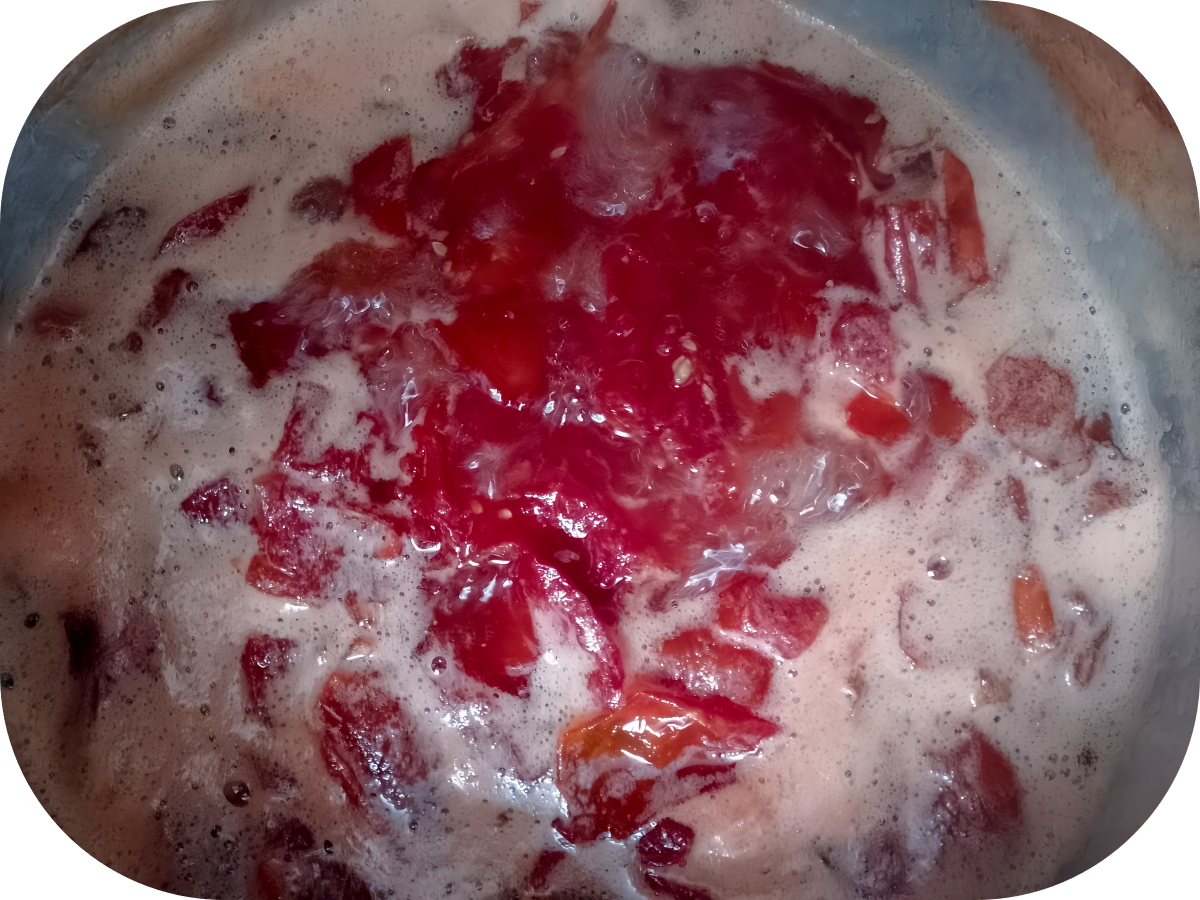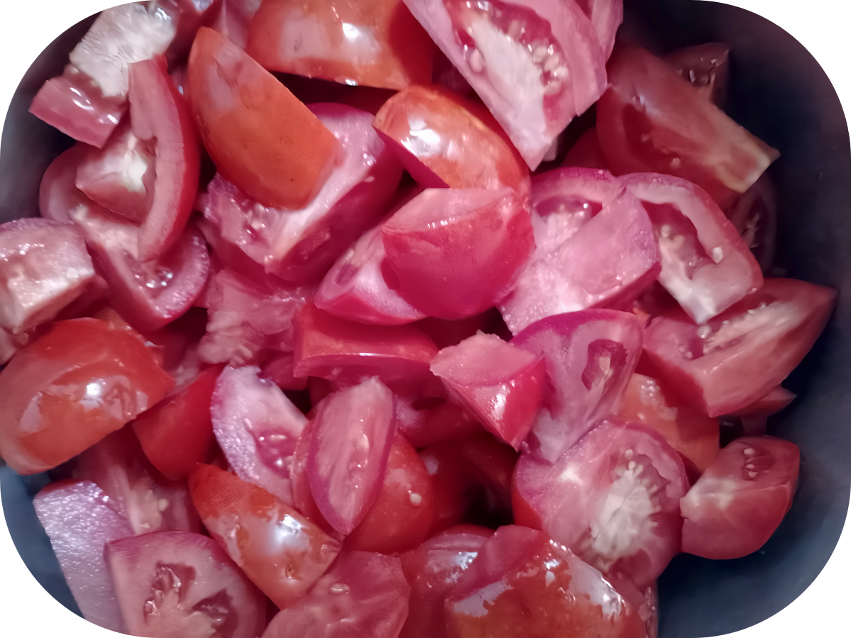 Laver les tomates. Enlever la base du pédoncule. Les couper en morceaux. Les mettre dans une casserole.