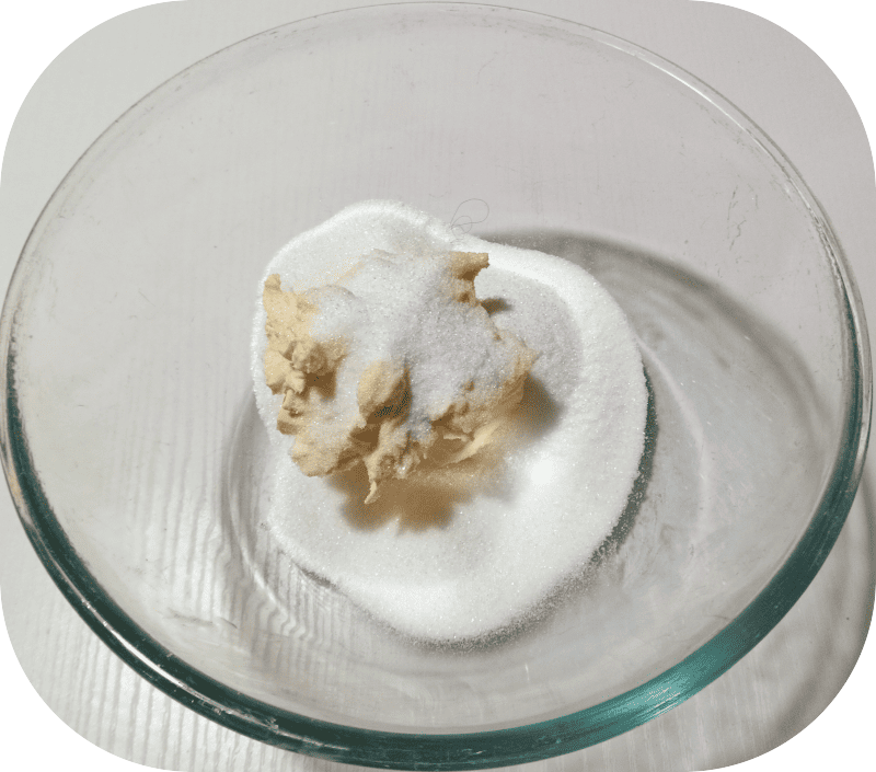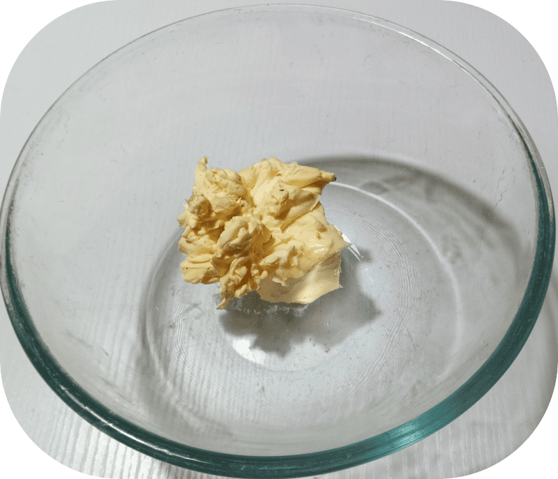 Mescolare con una forchetta il burro morbido, lo zucchero e la polvere di mandorle, fino a ottenere una crema omogenea.