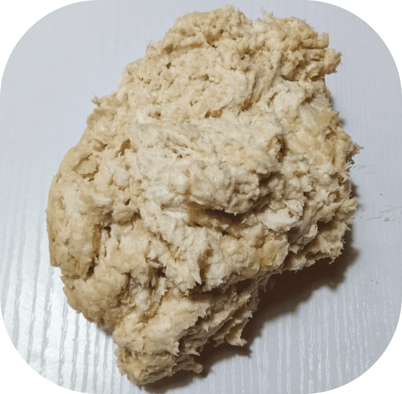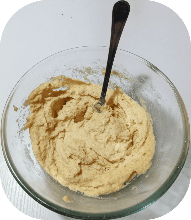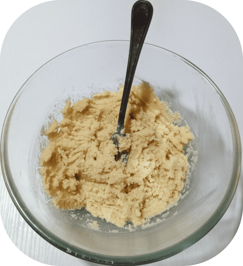 Mélanger à la fourchette puis à la main jusqu'à obtenir une pâte lisse et dense