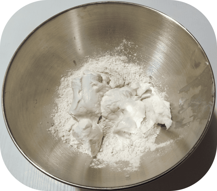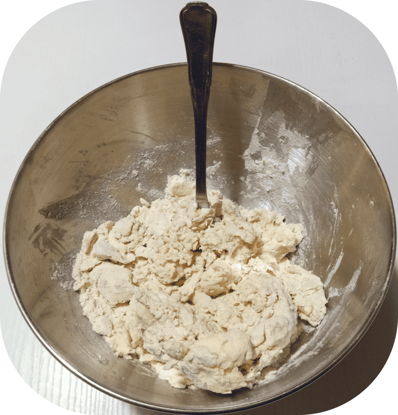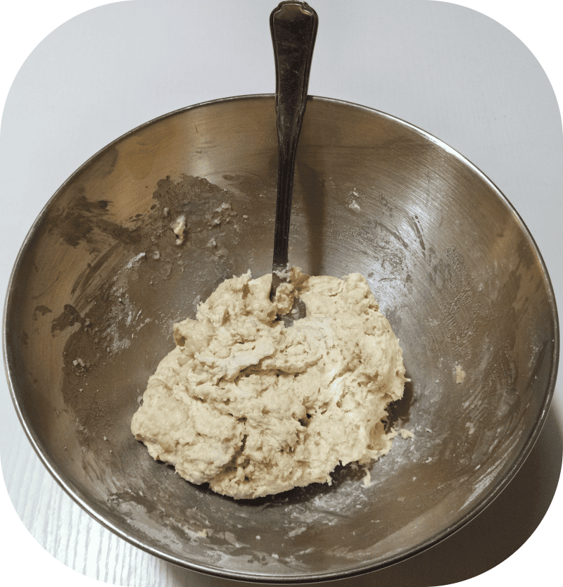 Mescolare con la forchetta e poi con le mani fino a ottenere un impasto liscio e compatto.