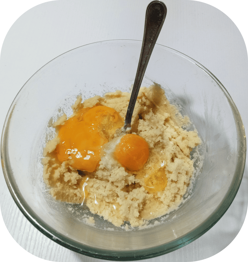 Aggiungere le uova. Mescolare. Mettere da parte.