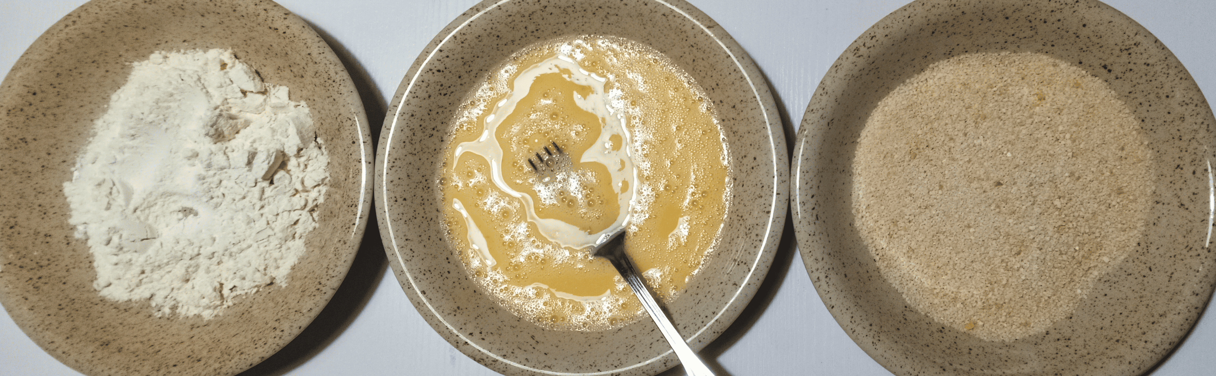 Dans trois assiettes, mettre la farine, les œufs battus à la fourchette et la chapelure.